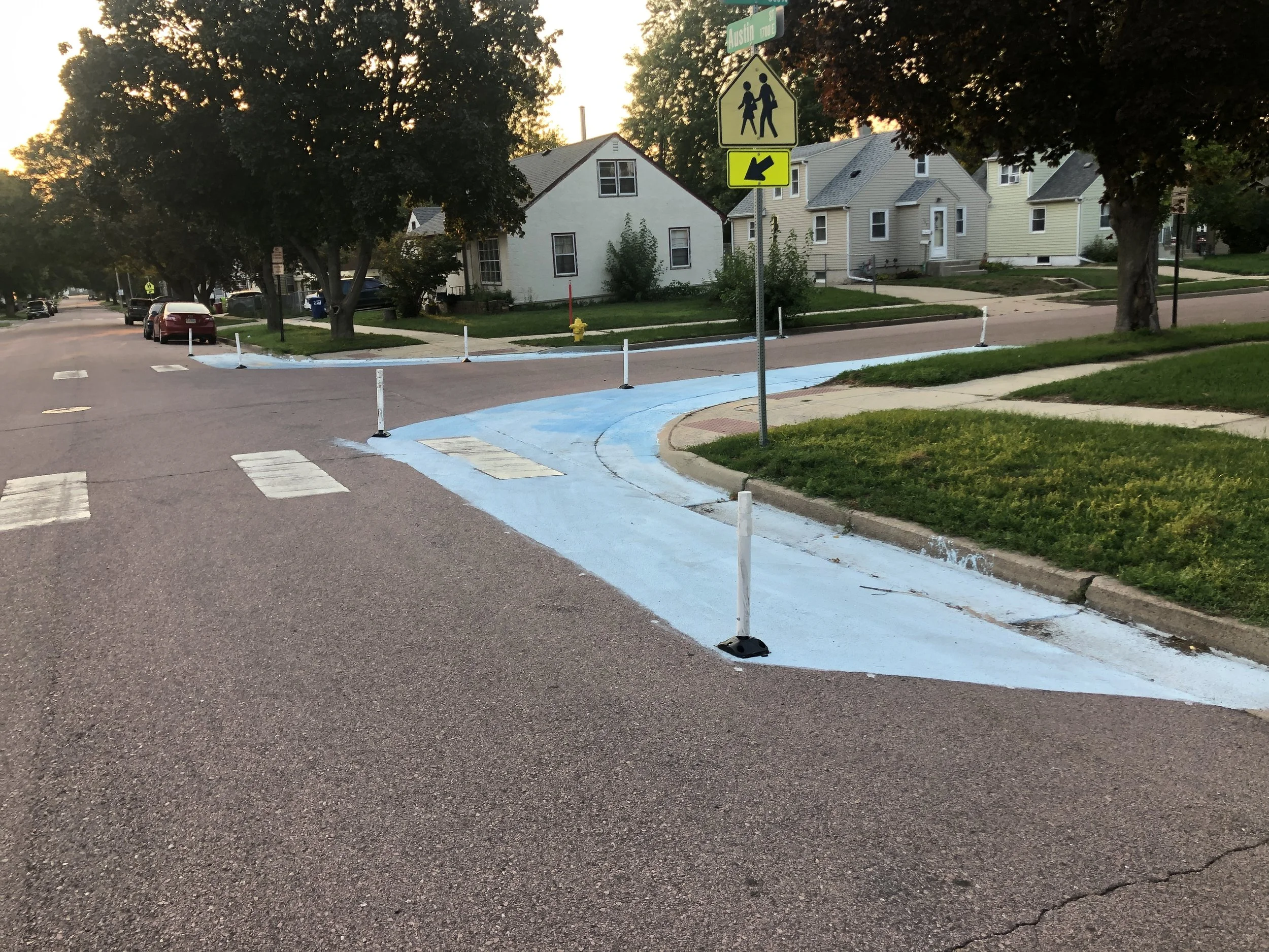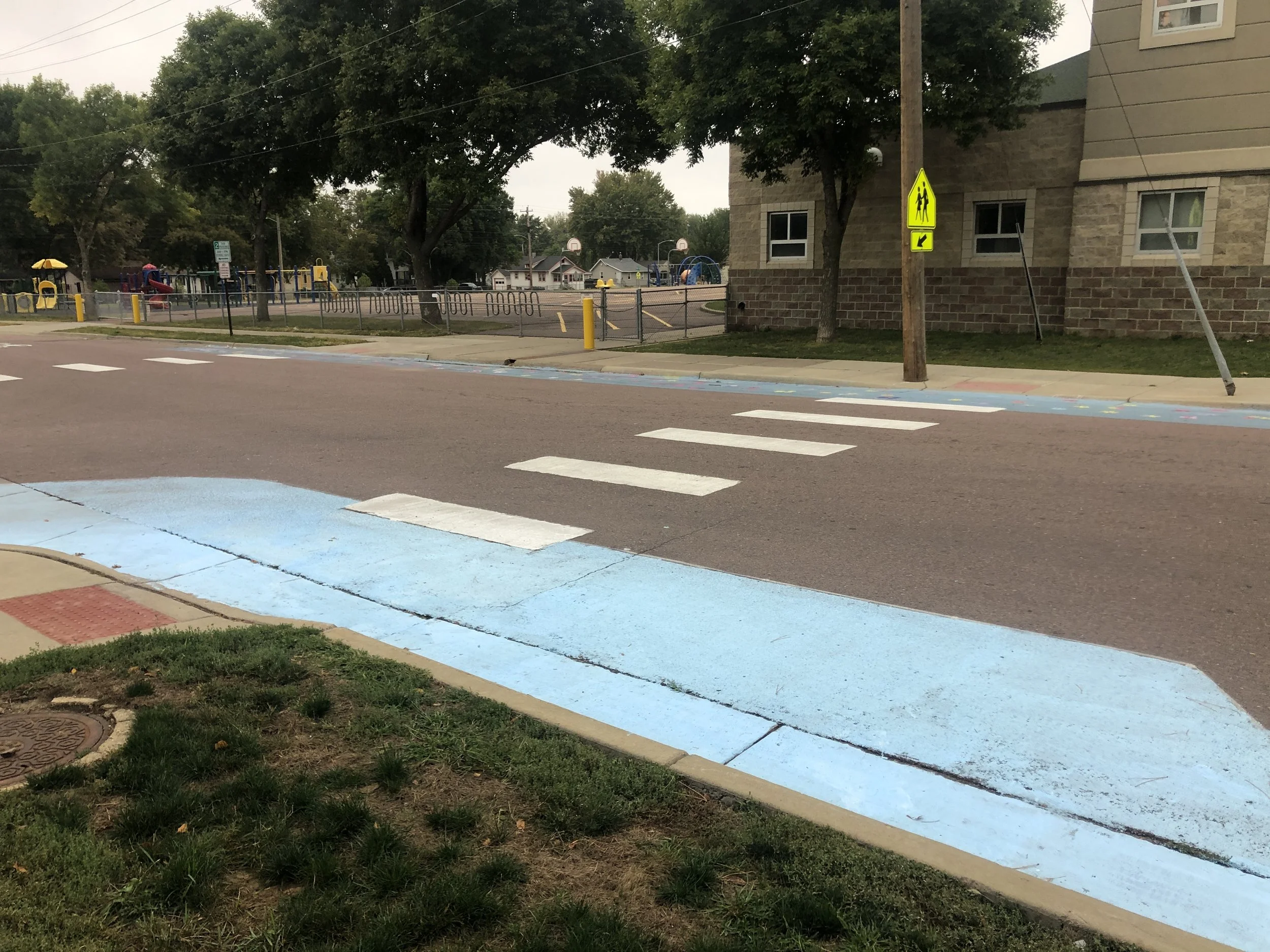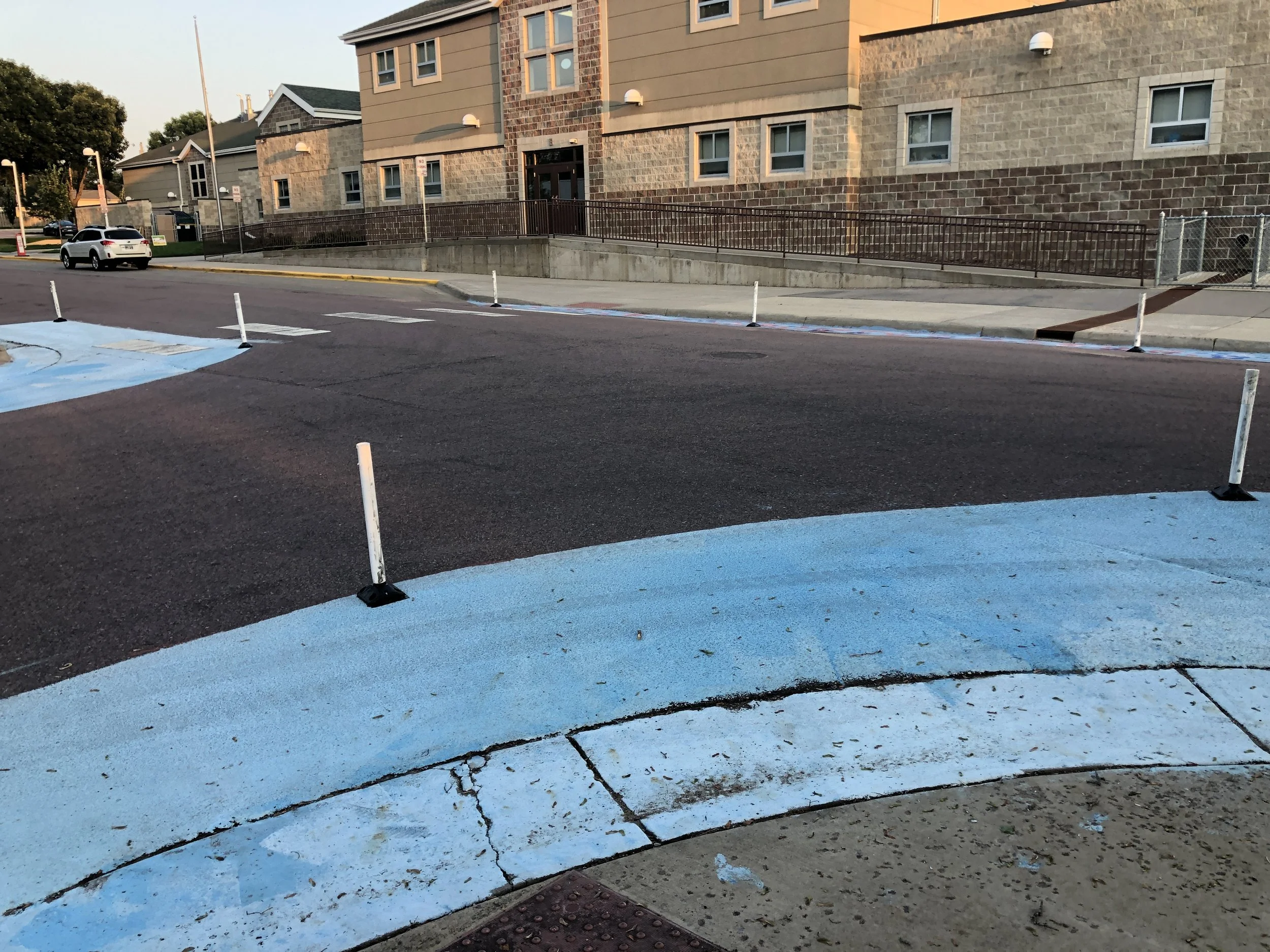 I was contacted by the local non-profit Thrive to help address concerns about speeding and dangerous traffic outside a neighborhood elementary school. Working closely with the organization and school staff, I developed a plan to redesign every curb corner surrounding the school to make crossings safer and more visible. The project included adding brightly painted crosswalks and creating decorative bumpouts that not only calm traffic but also bring color and life to the area. To make the project truly community-driven, I invited students to take part by painting flowers and other designs on the new bumpouts, helping them take pride in making their school safer and more welcoming.